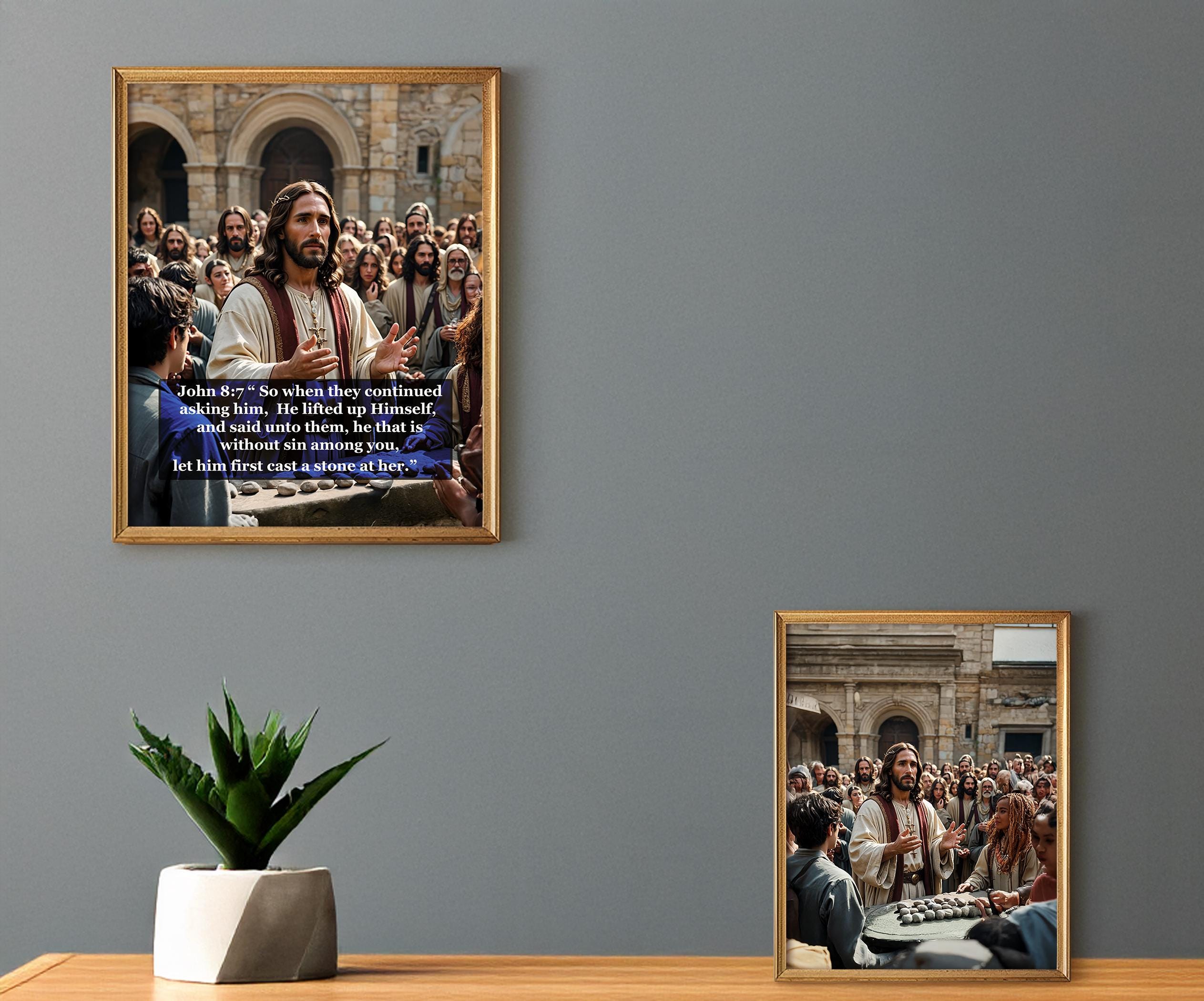 The First Stone - Inspirational Christian Wall Art with 5 Images for Home Decor