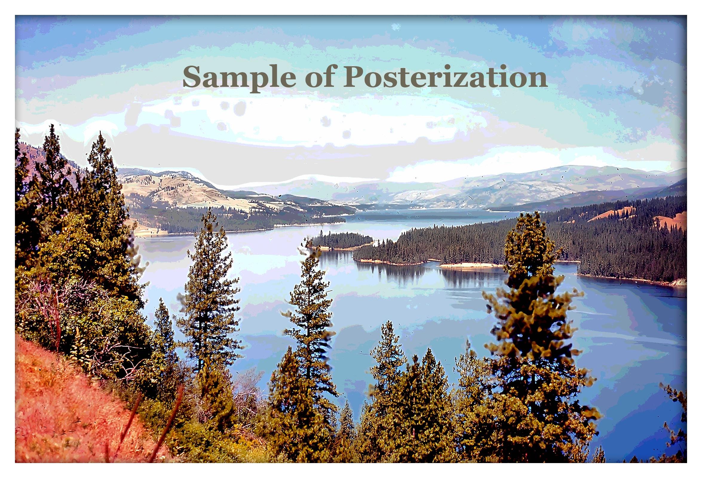 Brown Hills Lake digital art print, modern artwork, printable wall decor, abstract landscape, art lover gift, downloadable nature scene