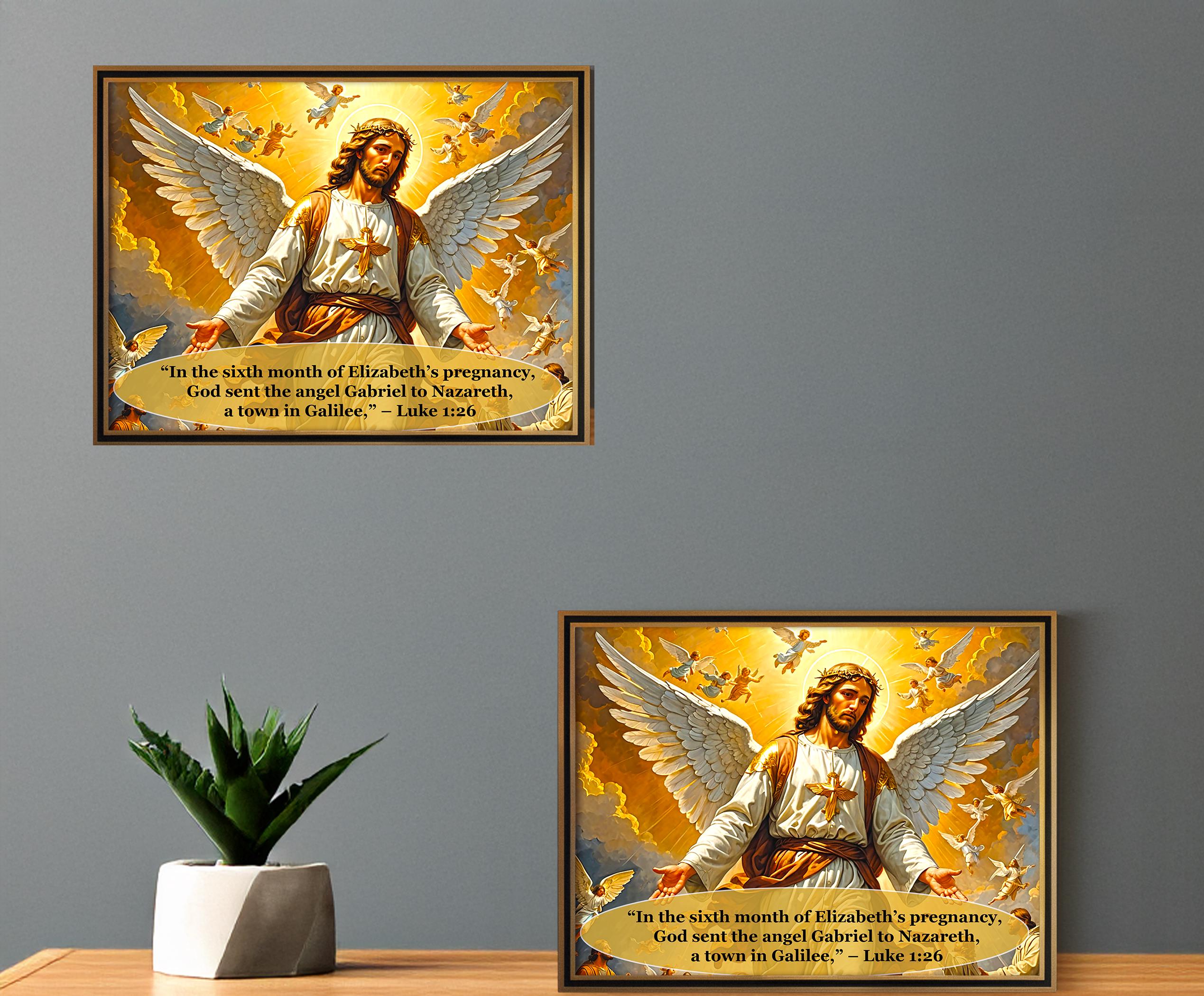 Perfect for wall art, DIY crafts, or as a thoughtful gift, this digital download features a stunning depiction of the angel Gabriel, capturing a moment of divine presence and celestial beauty.
