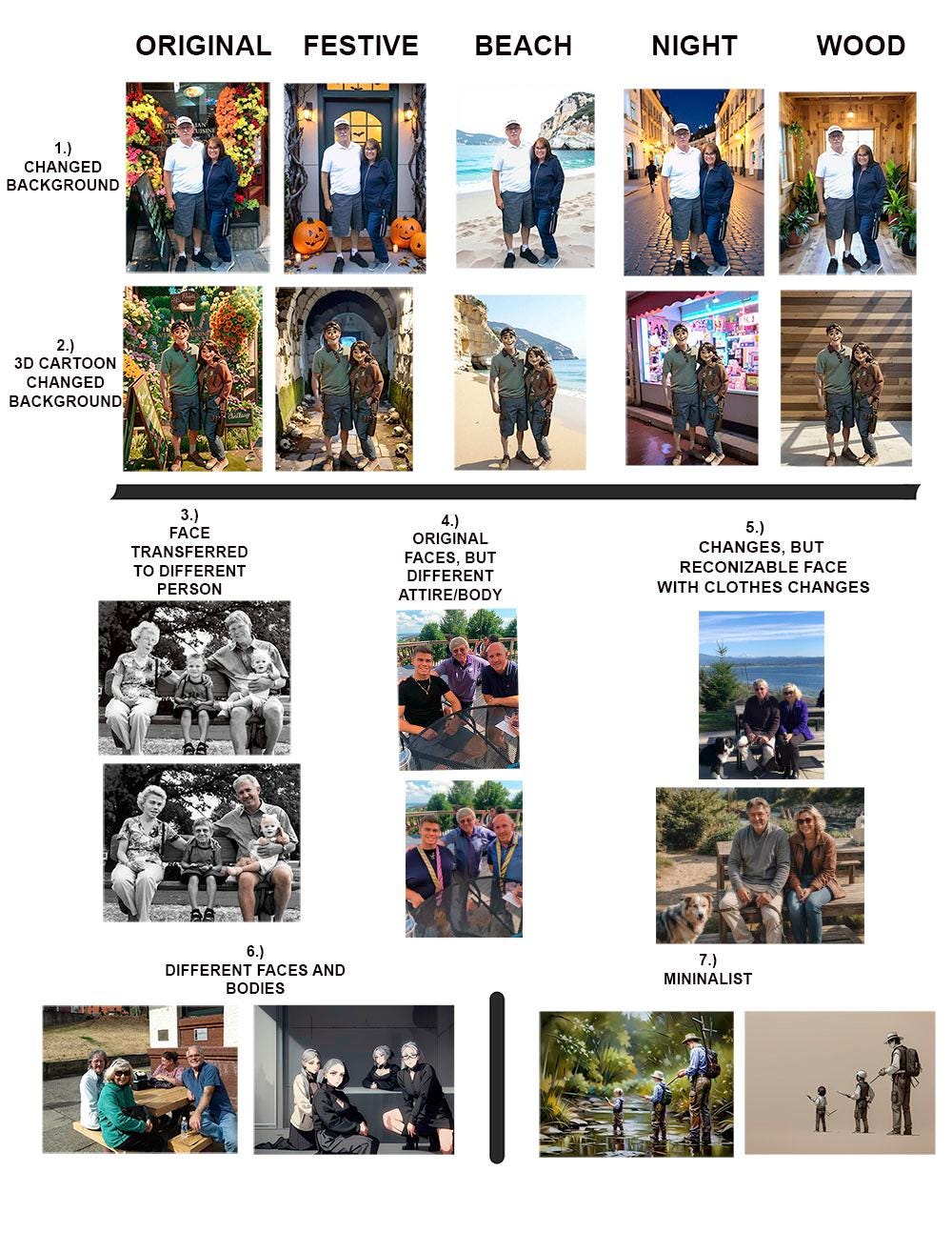 You are about to have some fun - Transform your favorite photos into fun, vibrant keepsakes with our Transformation service! Whether you're looking to create a playful face swap, a background change, or a full cartoon version of your cherished memories, we’re here to bring your vision to life.
